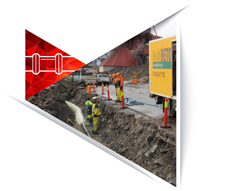 Oppdraget bestod av forsiktig rivning under drift av fundament. Rørgata ble stabilisert med spesialbygde bukker. Fundamentene ble kuttet med wiresag og nye fundament ble etablert. Forankringsklossene ble vannmeislet. Det ble skiftet ut dårlig armering, og tørrsprøytet med spesialmørtel.